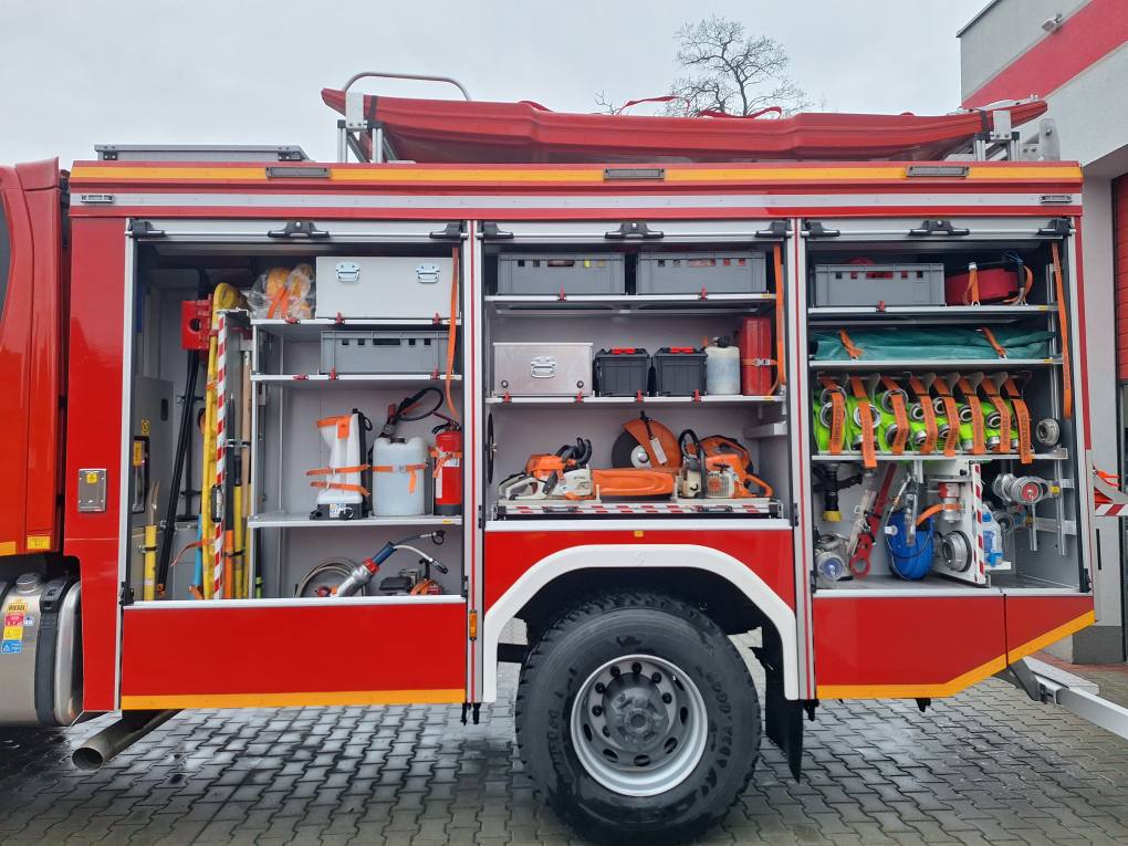 Na wyposażeniu między innymi armatura wodno-pianowa, zestaw ratownictwa technicznego, sprzęt burzący, zestaw ratownictwa medycznego, motopompy, agregat prądotwórczy, narzędzia, drabiny, sprzęt łączności itp.
