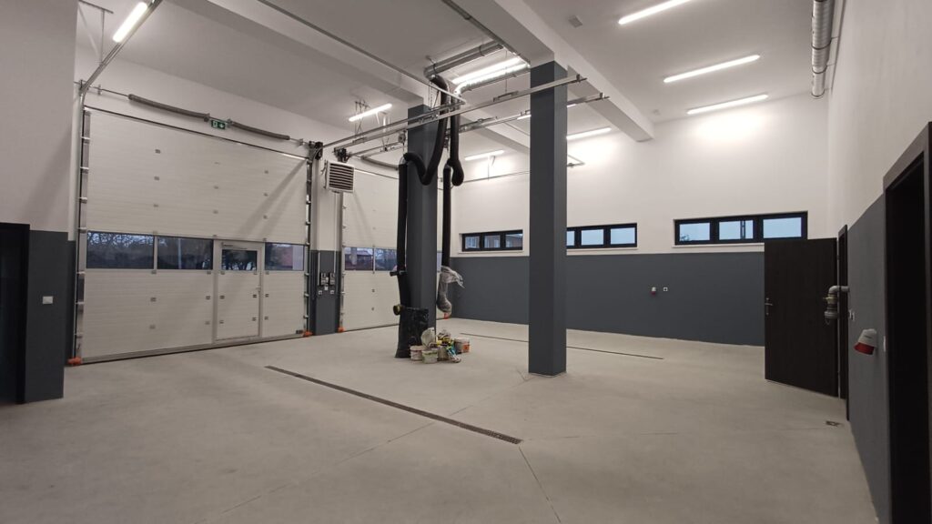Parter nowej siedziby strażaków to garaż na dwa samochody ratowniczo – gaśnicze, warsztat i dwa pomieszczenia techniczne i pomocnicze. Z kolei na piętrze znajduje się sala narad wraz z zapleczem kuchennym, szatnia, toalety i biuro.