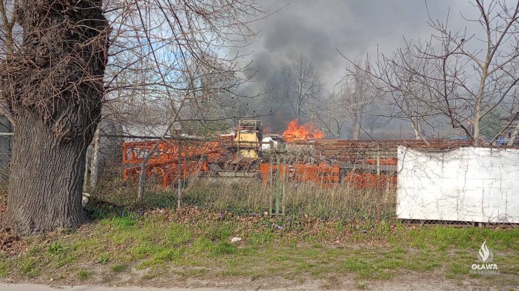Dwadzieścia zastępów straży pożarnej gasi pożar, który wybuchł w niedzielę na złomowisku w Oławie.