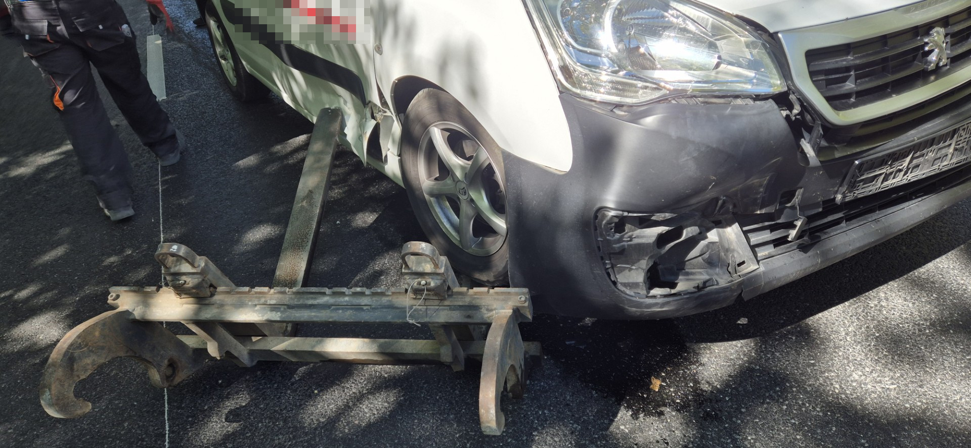 Jechał bez tablicy rejestracyjnej i zderzaka