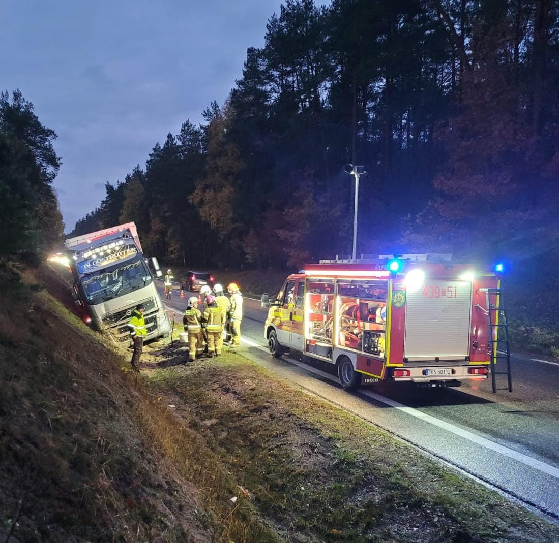Nawet do godziny 21:00 w piątek ruch może odbywać się wahadłowo na drodze krajowej 74 w okolicach miejscowości Koliszowy. Ciężarówka wypadła z jezdni i znalazła się w rowie. W pojeździe pękła opona.