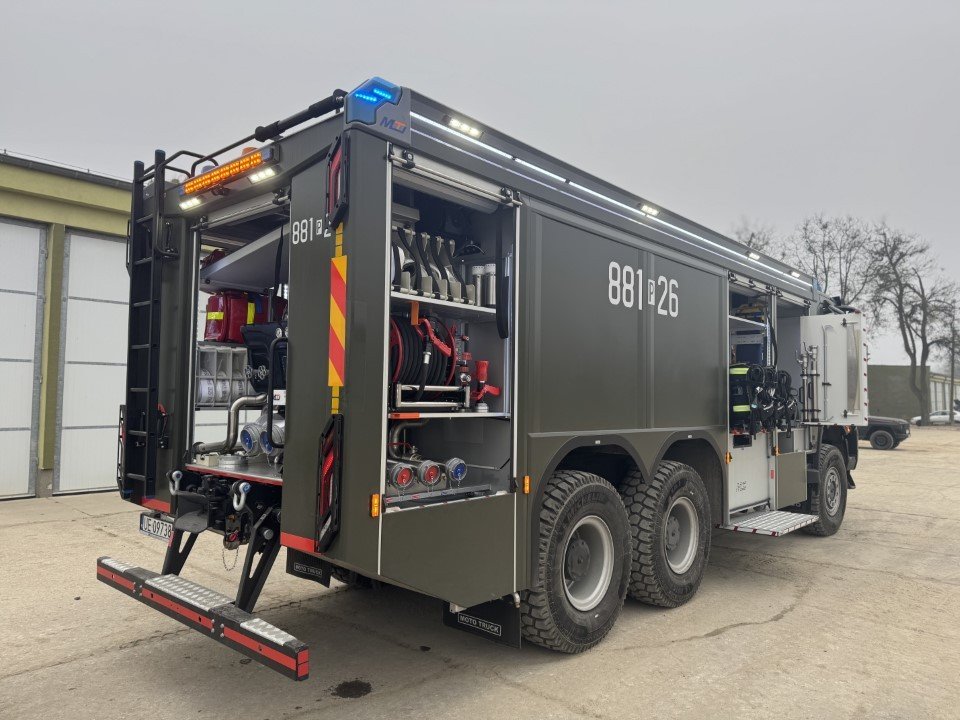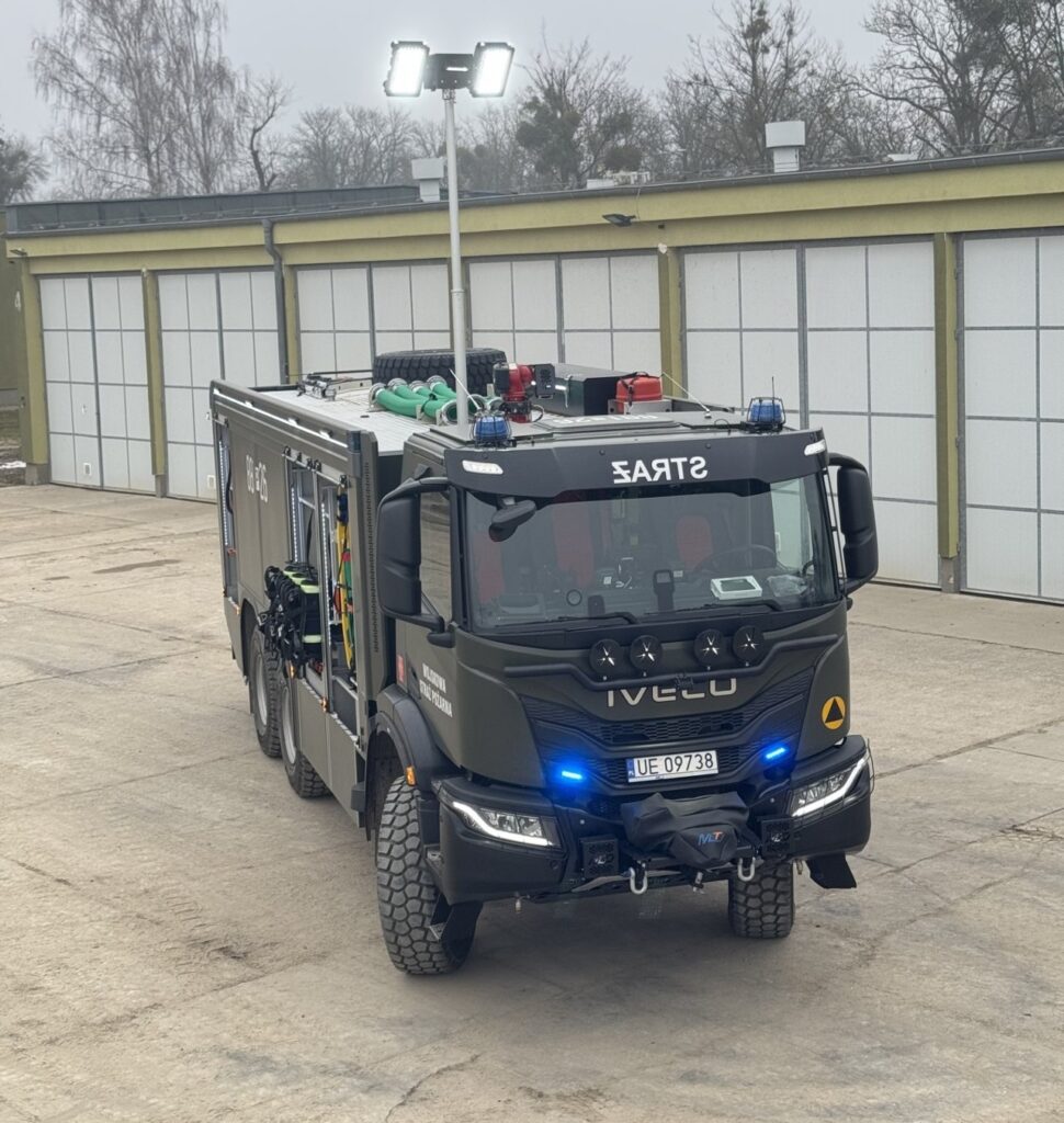 Strażacy wzbogacili się fabrycznie nowy ciężki samochód ratowniczo – gaśniczy Iveco T-Way, który został zabudowany przez firmę Moto-Truck. Dysponuje on napędem 6×6, kabiną trzyosobową, silnikiem o mocy 460 koni mechanicznych i automatyczną skrzynią biegów.