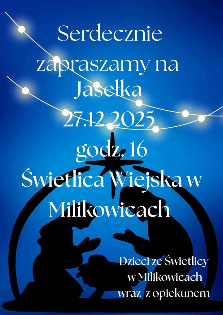 Jasełka odbędą się w sobotę, 27 grudnia o godz. 16.00 w świetlicy wiejskiej w Milikowicach.