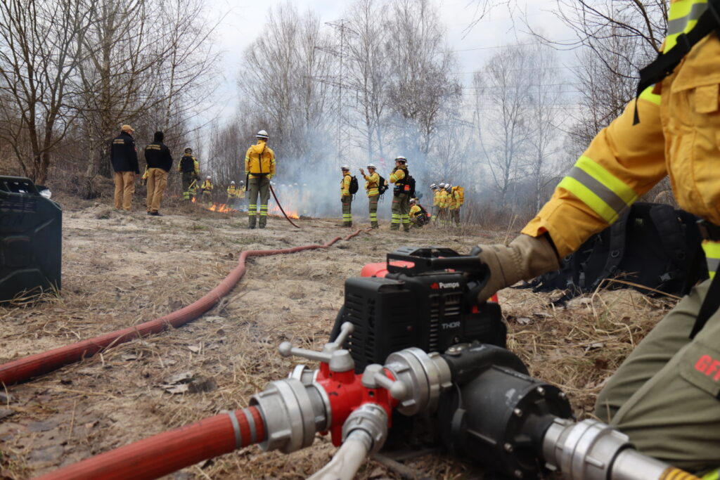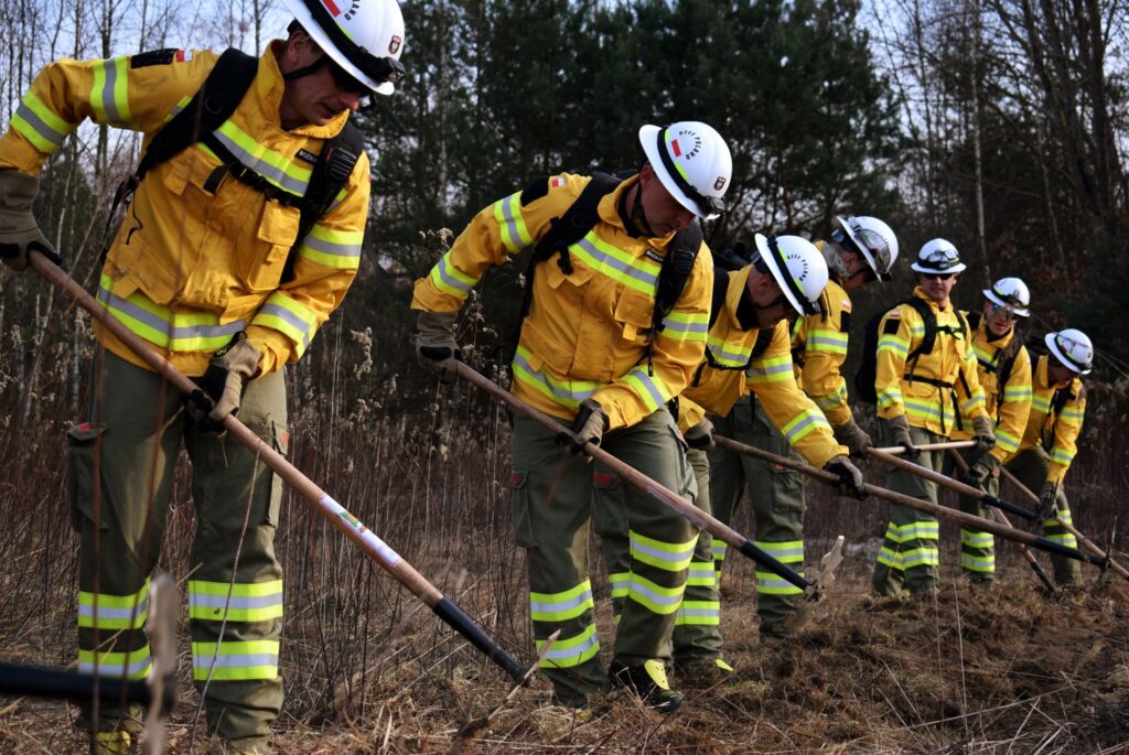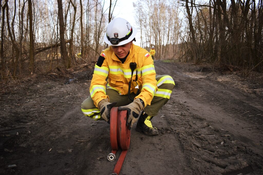 Drugi dzień to praktyka. Strażacy zostali podzieleni na cztery sekcje i realizowali zadania związane z budową pasów oddzielenia przeciwpożarowego, procedur medycznych, sprzętu mechanicznego, pomp i armatury wodnej.