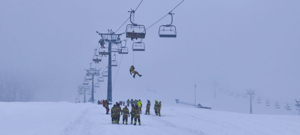 Epizod ćwiczeń zakładał awarię kolei krzesełkowej. Z powodu braku możliwości uruchomienia zasilania awaryjnego podjęto decyzję o ewakuacji użytkowników przy pomocy drabin oraz technik linowych. W momencie zatrzymania na krzesłach znajdowało się około 40 osób – przekazała zakopiańska straż pożarna.