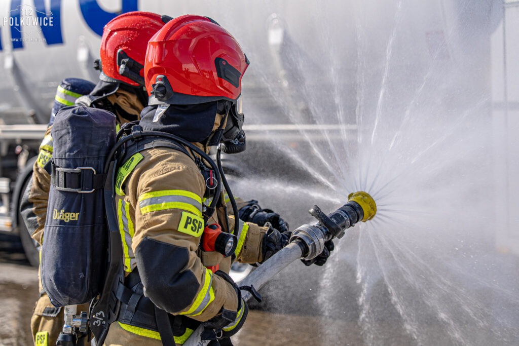 Ćwiczenia zorganizowano na terenie firmy zajmującej się produkcją styropianu w ramach sprawdzenia powiatowego planu ratowniczego, który został opracowany dla zakładu.