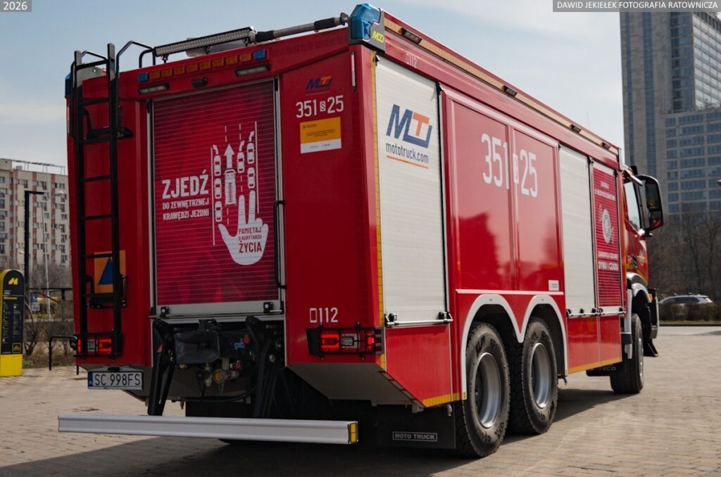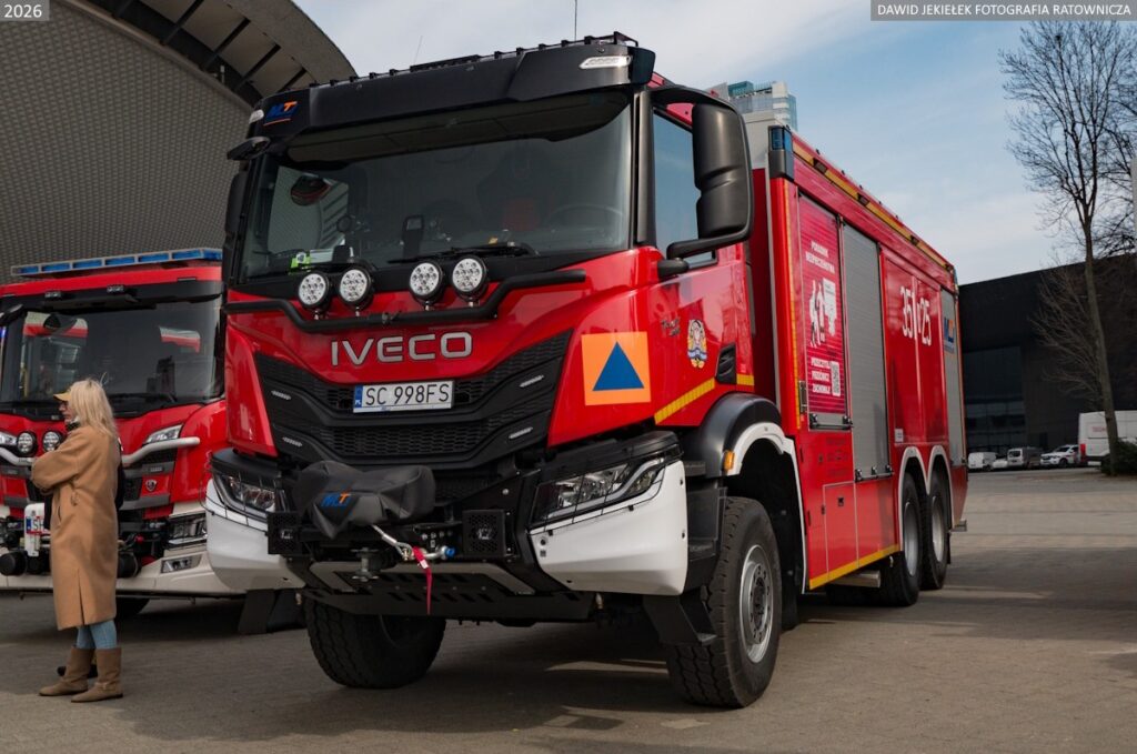 Nowy nabytek, który zaparkował w garażu jednostki to trzyosiowe Iveco T-Way 460 6×6 zabudowane przez firmę Moto-Truck z Kielc.