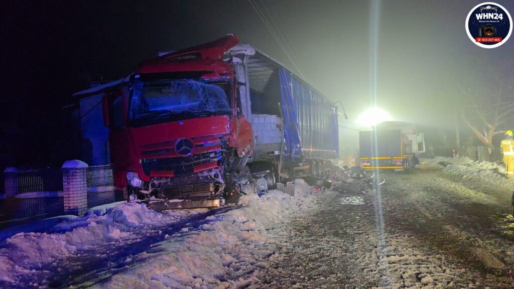 W nocy ze środy na czwartek w miejscowości Kazuń Bielany doszło do czołowego zderzenia dwóch ciężarówek.