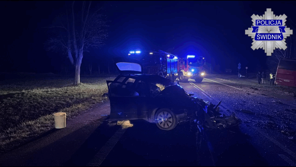 Policjanci z Komendy Powiatowej Policji w Świdniku wstępnie ustalili, iż kierujący samochodem osobowym marki audi zjechał na przeciwległy pas ruchu i doprowadził do czołowego zderzenia z autobusem.