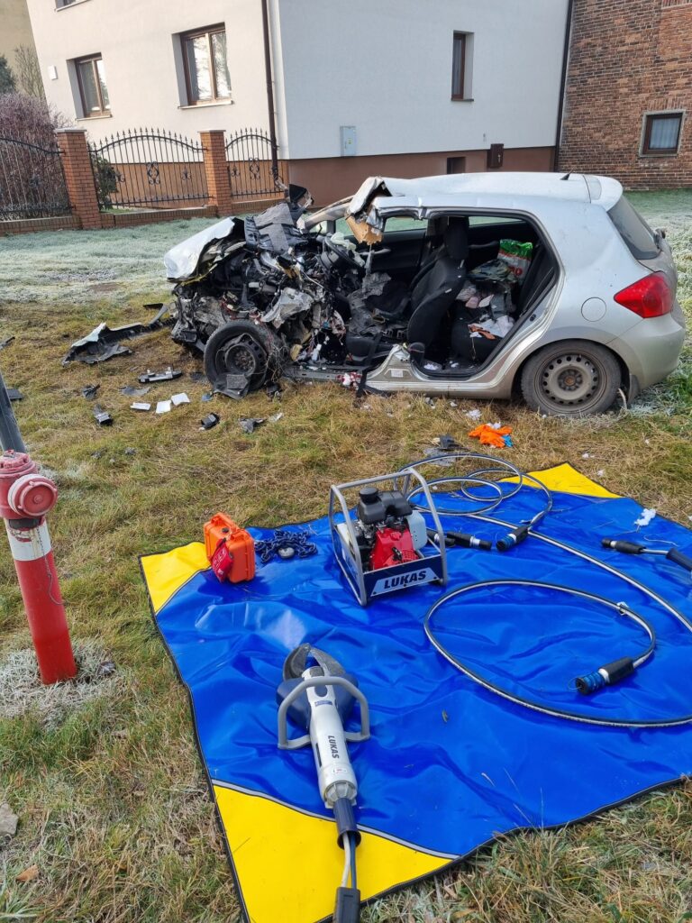Po przybyciu na miejsce stwierdzono, iż poszkodowane zostały dwie osoby, w tym jedna zakleszczona znajduje się w pojeździe. Działania ratowników polegały na zabezpieczeniu miejsca zdarzenia, wykonaniu dostępu przy użyciu narzędzi hydraulicznych oraz ewakuacji poszkodowanego kierowcy samochodu osobowego – informuje KM PSP w Tychach.