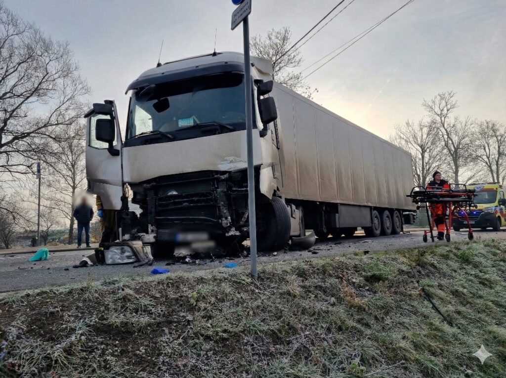 Po godzinie ósmej rano na ulicy Chełmskiej w miejscowości Chełm Śląski z nieznanych przyczyn doszło do czołowego zderzenia samochodu osobowego z ciężarówką.