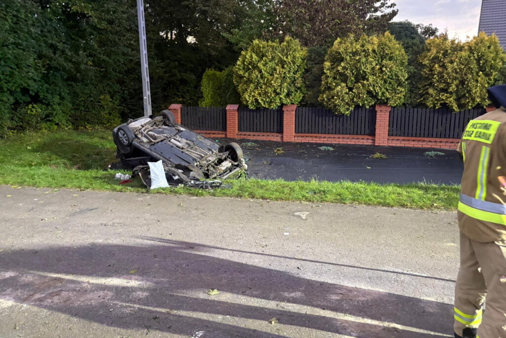 Zdjęcie: Dachowanie auta. Kierowca był nietrzeźwy