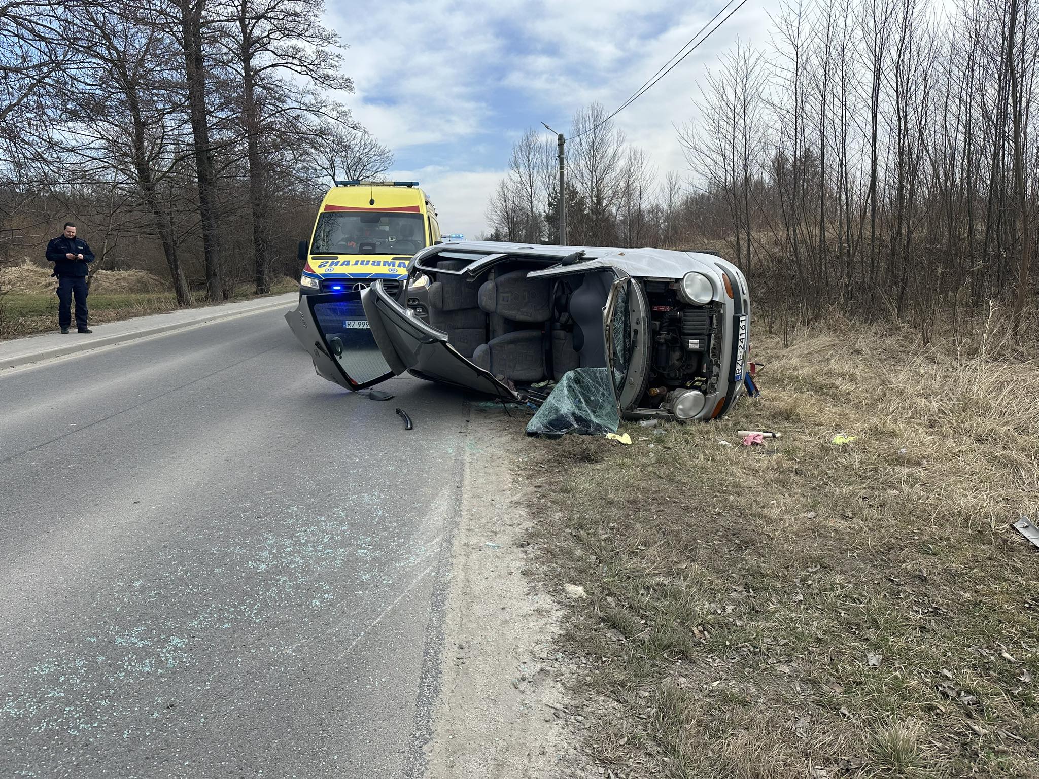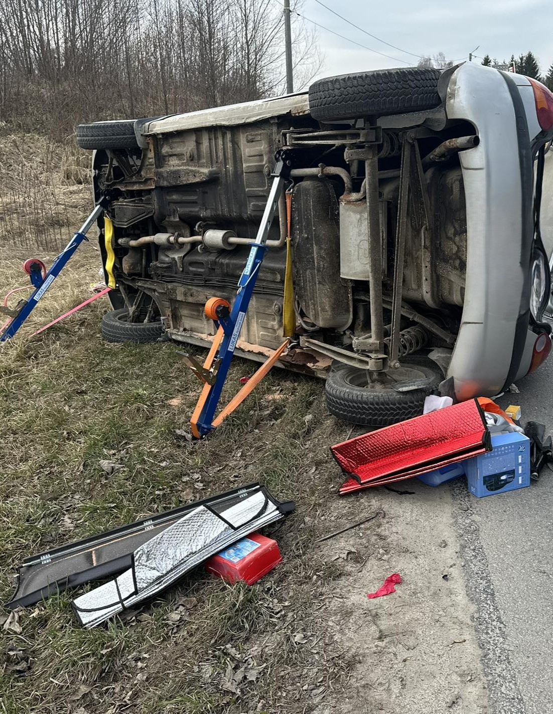 fot. OSP RacławówkaDo wypadku doszło około godziny 13, gdzie kierująca autem osobowym marki Daewoo Matiz dachowała, na miejscu okazało się iż osoba jest zakleszczona w pojeździe, przyczyny wypadku na ten moment nie są znane.