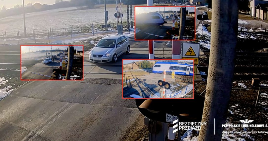 Film z kolejowego thrillera, na szczęście ze szczęśliwym finałem, opublikowały PKP Polskie Linie Kolejowe. Do zdarzenia doszło na przejeździe w Starej Wsi koło Piotrkowa Trybunalskiego (woj. łódzkie) 17 lutego. Kierująca Volkswagenem zamierza pokonać tory, co warto podkreślić – zgodnie z przepisami: światła ostrzegawcze się nie palą, szlabany są podniesione.