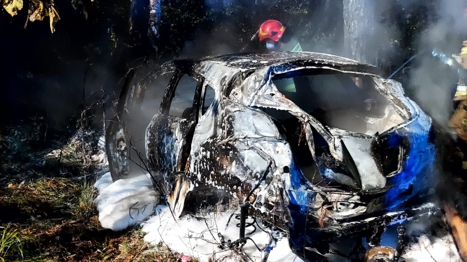 Dramatyczny wypadek na S1 w Katowicach. Auto stanęło w płomieniach. Młoda kobieta ranna
