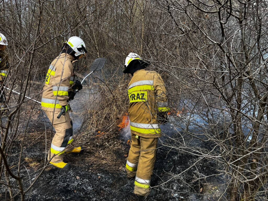 Strażacy z powiatu częstochowskiego walczą z dwoma dużymi pożarami traw. Sytuację utrudnia silny wiatr.