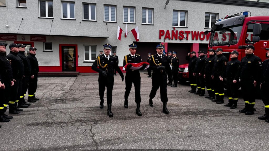 Uroczystego podniesienia flagi państwowej dokonano podczas zmiany służby we wszystkich jednostkach organizacyjnych Państwowej Straży Pożarnej.
