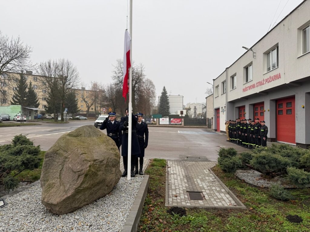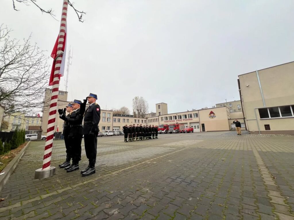 W 107. rocznicę odzyskania niepodległości w jednostkach organizacyjnych PSP odbyło się uroczyste podniesienie flagi państwowej na maszt.
