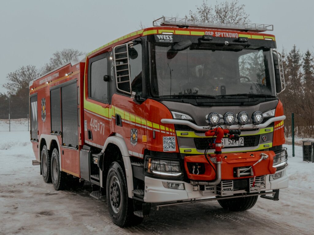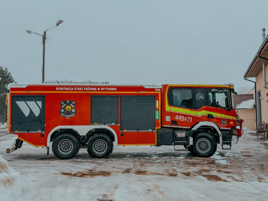 Jedyny taki samochód w powiecie giżyckim został zabudowany przez firmę WISS Samochody Specjalne na trzyosiowym podwoziu Scania P450 6×6.