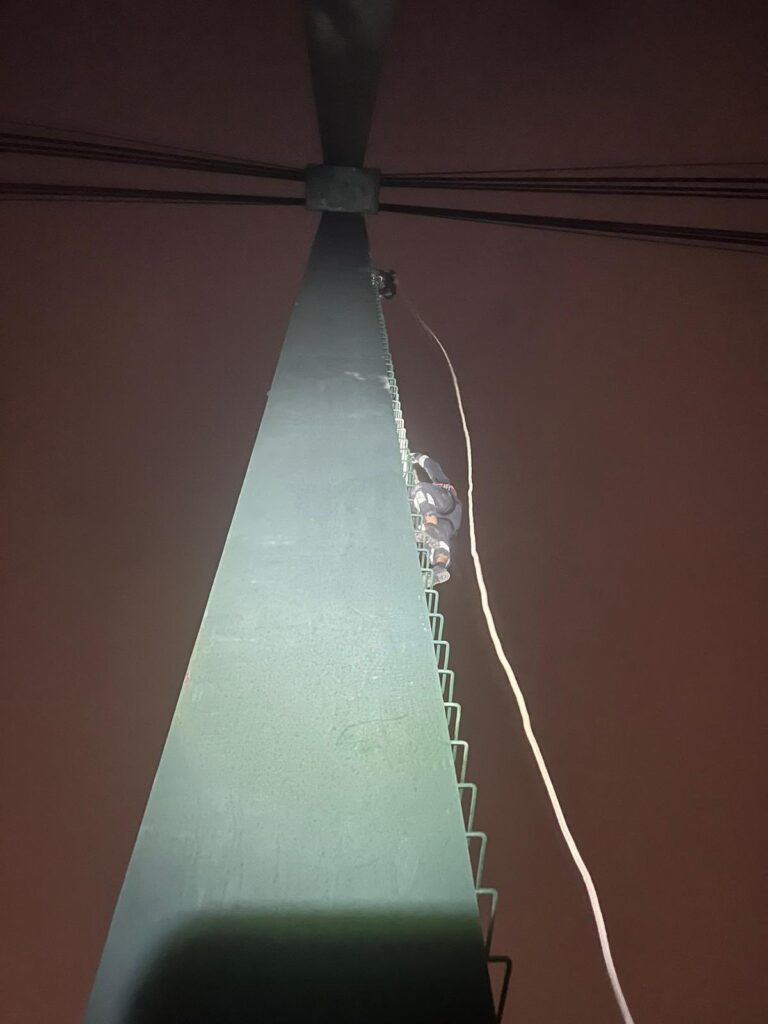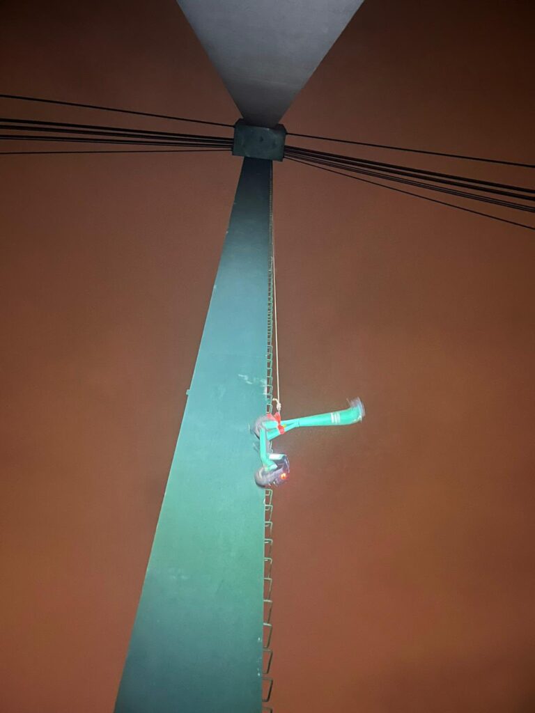 Nieznana osoba weszła na 40-metrowy pylon kładki i na jej szczycie zostawiła hulajnogę elektryczną. W czwartek po godzinie siedemnastej na miejsce zadysponowano strażaków ze Specjalistycznej Grupy Ratownictwa Wysokościowego KRAKÓW-3.
