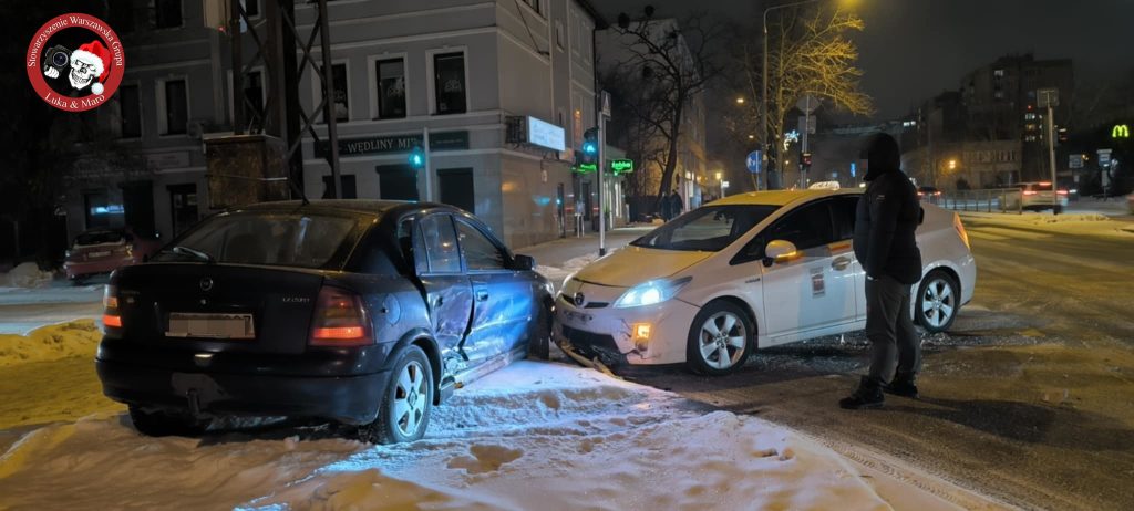 Zderzyły się dwa samochody osobowe Opel oraz taksówka marki Toyota. Jak przyznał sam uczestnik zdarzenia, kierowca Opla wymusił pierwszeństwo przejazdu, doprowadzając do kolizji. Siła uderzenia była znaczna Opel został zepchnięty na słup oraz kosz, co całkowicie zablokowało możliwość opuszczenia pojazdu drzwiami, zarówno z lewej, jak i z prawej strony.
