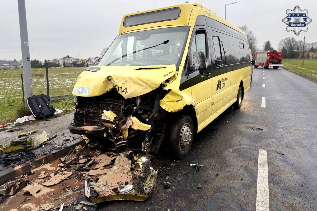 Do wypadku doszło 25 listopada przed godziną 13:00. Jak wynika z wstępnych ustaleń, 18-letni kierowca bmw, jadąc ulicą 3-Maja od strony ulicy Laryskiej, prawdopodobnie nie dostosował prędkości do panujących warunków drogowych. W wyniku tego doszło do zderzenia z miejskim autobusem jadącym z naprzeciwka. Młody kierowca z Katowic został przetransportowany w ciężkim stanie do szpitala śmigłowcem Lotniczego Pogotowia Ratunkowego. Kierowca autobusu oraz jeden z pasażerów doznali niegroźnych obrażeń.