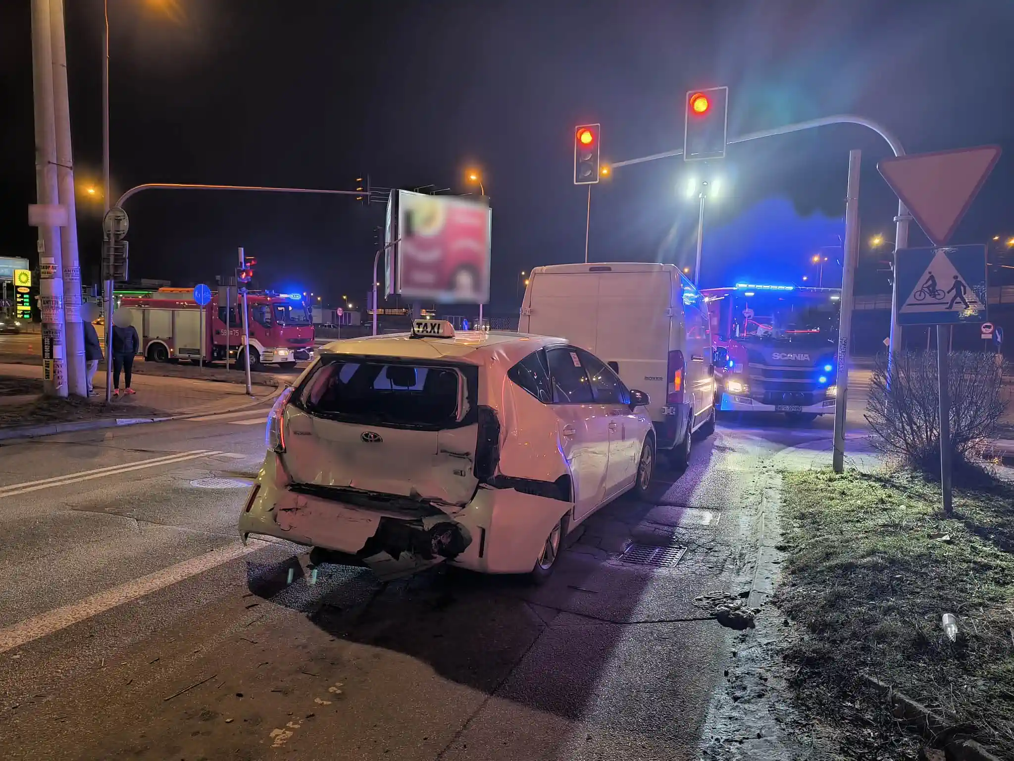 Jak relacjonują reporterzy, samochody mają poważne uszkodzenia: rozbite przody i tyły aut oraz zniszczone elementy karoserii, które leżą na jezdni. Jedno z aut to taksówka z mocno uszkodzonym tyłem.