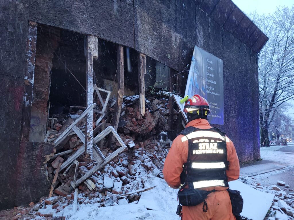 Grupa ratownictwa z udziałem dwóch psów przeszukiwała gruzowisko, ale nie stwierdzono, by w obiekcie znajdowały się poszkodowane osoby – przekazał w rozmowie z portalem bielsko.biala.pl mł. bryg. Łukasz Sztafiński, dowódca JRG1 w Bielsku-Białej.