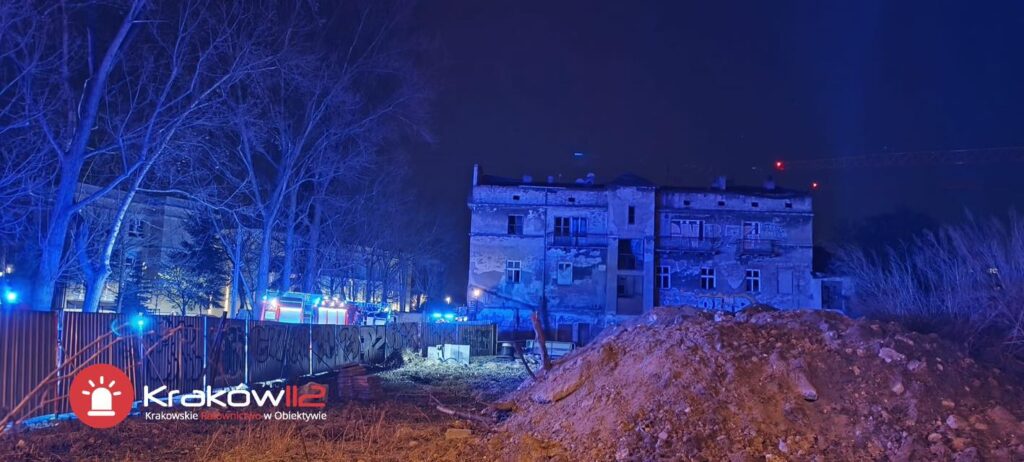 Około godziny osiemnastej w pustostanie doszło do częściowego zawalenia dachu. Na miejsce zadysponowano zastępy z JRG 1 Kraków, Specjalistyczną Grupę Poszukiwawczo-Ratowniczą z Nowego Sącza, Grupę Ratownictwa Specjalistycznego OSP Kraków i policję.