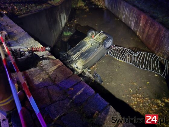 Fatalnie zakończył się manewr wyprzedzania innego pojazdu, którego podjął się 25-letni kierowca w Świdnicy. Jego seat na łuku drogi uderzył w krawężnik, wybił się, przebił barierki i wpadł do potoku Witoszówka, uchodzącego do rzeki Bystrzycy. Na szczęście mężczyzna wyszedł z auta bez szwanku.
