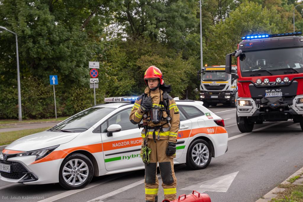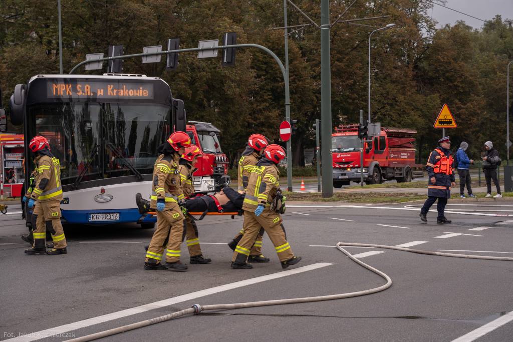 Na miejsce zadysponowano zastępy z Jednostki Ratowniczo – Gaśniczej Szkoły Aspirantów PSP w Krakowie, zastęp z JRG 7, samochód ratownictwa medycznego z JRG 1 oraz Zespoły Ratownictwa Medycznego, Policję i Nadzór Ruchu MPK.