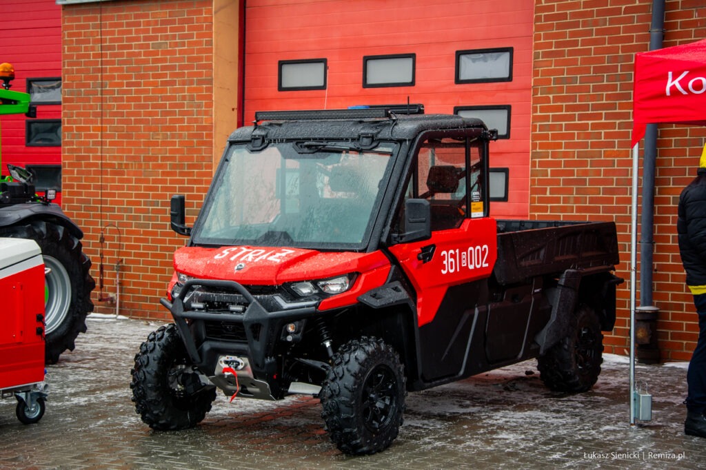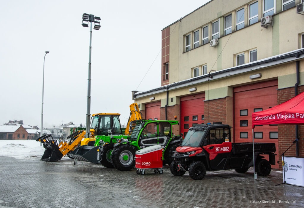 Łomżyńska straż pożarna została doposażona między innymi w nowy lekki samochód rozpoznawczo-ratowniczy Ford Ranger, ładowarkę teleskopową MERLO 35.7 CS-140 z chwytakiem do bel, łyżką i pługiem oraz przyczepą niskopodwoziową, pojazd typu UTV CAN AM Traxter PRO HD10 wyposażony w pług i zamiatarką wraz z przyczepą, quad Can-Am Outlander i łódź płaskodenną.