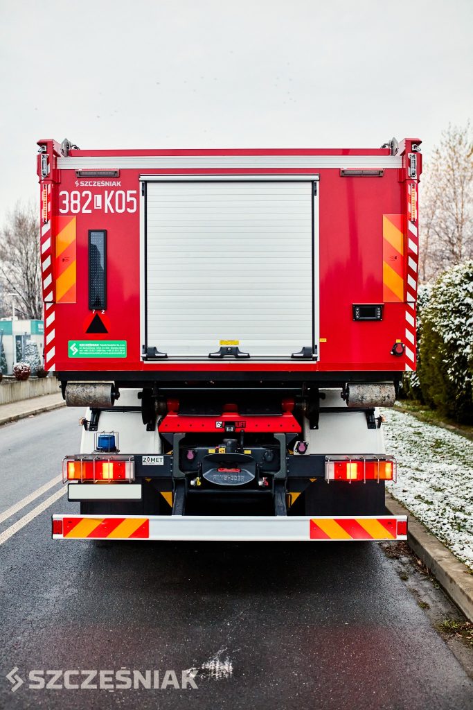 W skrytkach znajdują się między innymi węże tłoczne, noszak, stojaki hydrantowe, klucze, zbieracz, rozdzielacz, przełączniki, składany zbiornik o pojemności 5000 l, kanistry na paliwo, prądownica wodna, zestaw oświetleniowy, agregat prądotwórczy, pachołki, flary LED i przedłużacz.