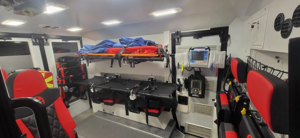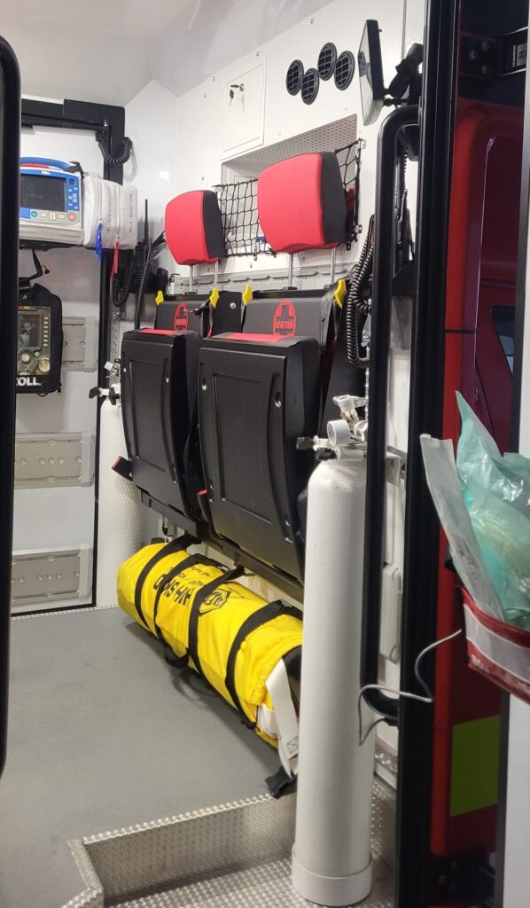 Na wyposażeniu znajdują się między innymi nosze do ewakuacji, plecakowy zestaw PSP R1, defibrylator, respirator transportowy, ssak akumulatorowy, kaski ochronne, nosze typu SKED, zestaw do tlenoterapii, krzesełko transportowe, pulsoksymetry, deski ortopedyczne, nosze podbierakowe i koce bakteriostatyczne.