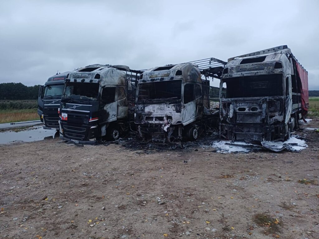 Zgłoszenie o zdarzeniu wpłynęło do straży pożarnej chwilę przed godziną trzecią w nocy. W miejscowości Talczyn płonęło pięć ciągników siodłowych i naczep. Zestawy znajdowały się blisko siebie co doprowadziło do szybkiego rozprzestrzenienia się ognia.