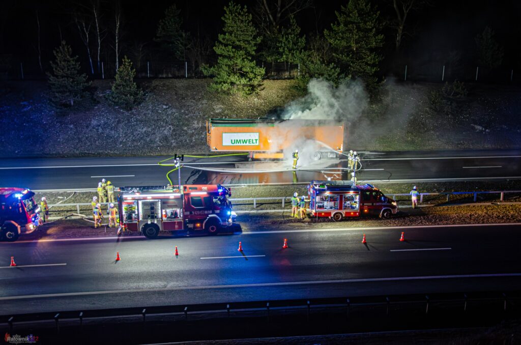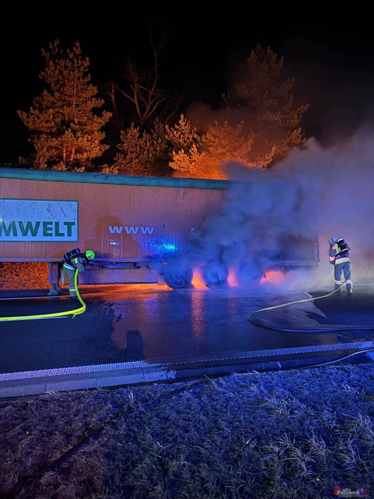 W nocy ze środy na czwartek strażacy zostali zadysponowani na autostradę A4, gdzie płonęła naczepa samochodu ciężarowego.