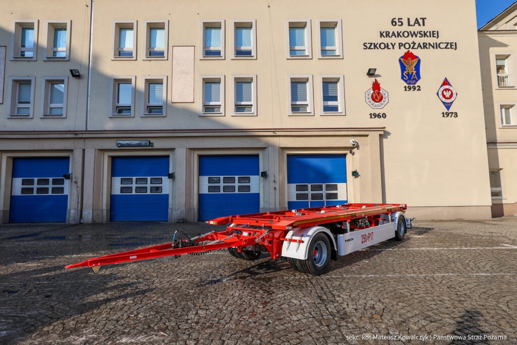 Wraz z nośnikami Szkoła Aspirantów PSP zamówiła również dwie przyczepy przystosowane do transportu kontenerów.
