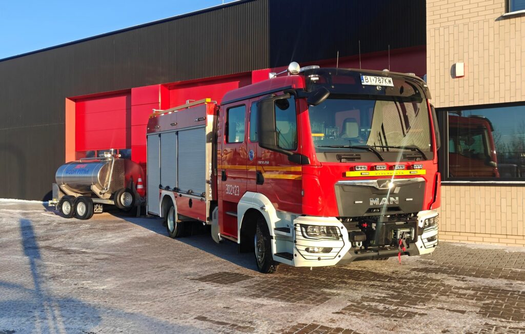 Pierwszy nowy nabytek to średni samochód ratowniczo – gaśniczy MAN TGL 12.250 4×2 zabudowany przez firmę Stolarczyk, wyposażony w zbiornik wody o pojemności 2500 litrów. Wraz z pojazdem dostarczona została przyczepa do przewozu wody pitnej o pojemności 2300 litrów.