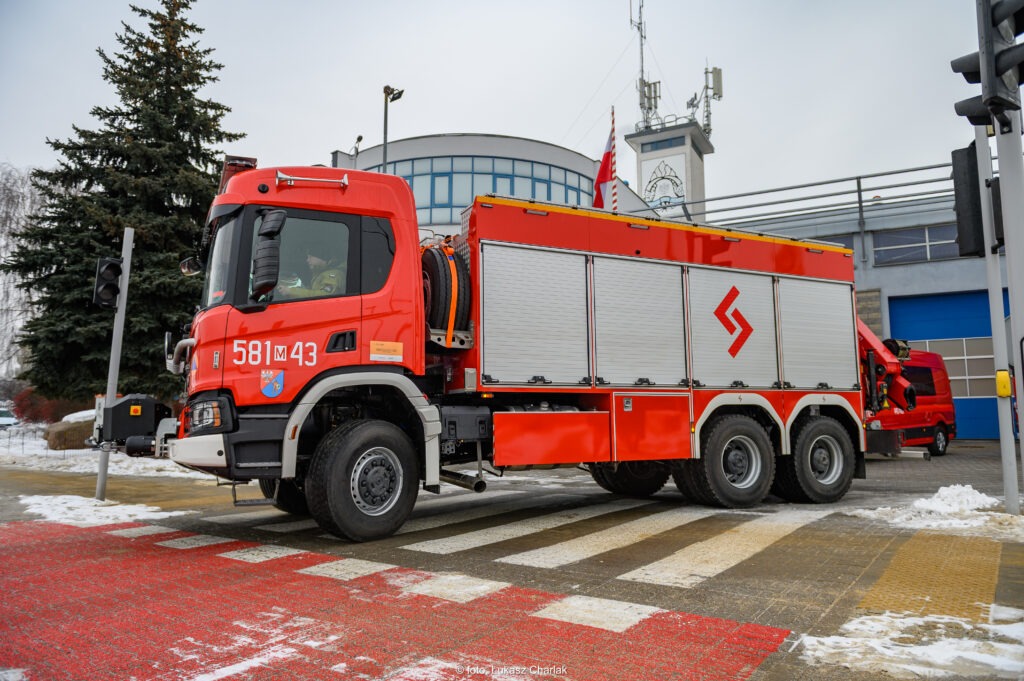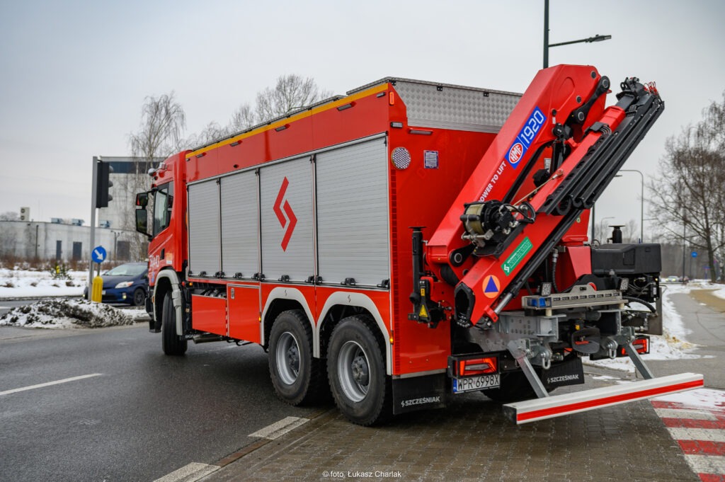 Samochód zabudowała firma Szczęśniak Pojazdy Specjalne na podwoziu Scania P450 XT 6×6.