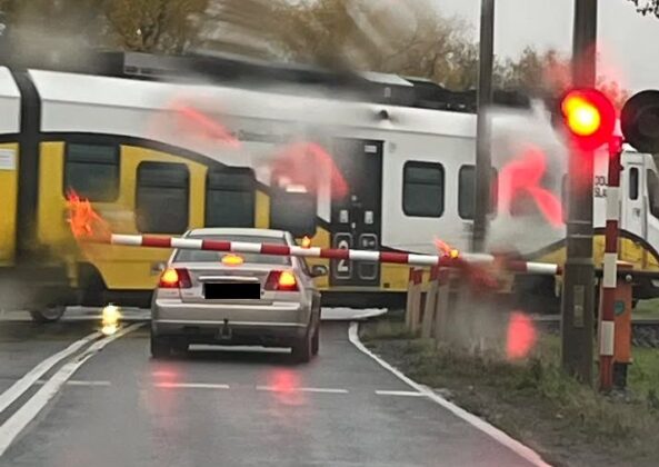 Do niebezpiecznej sytuacji doszło w czwartek, 23 października na przejeździe kolejowym w przebiegu drogi krajowej nr 35 między Pszennem a Marcinowicami. Samochód osobowy znalazł się za rogatkami, tuż przed nadjeżdżającym szynobusem.