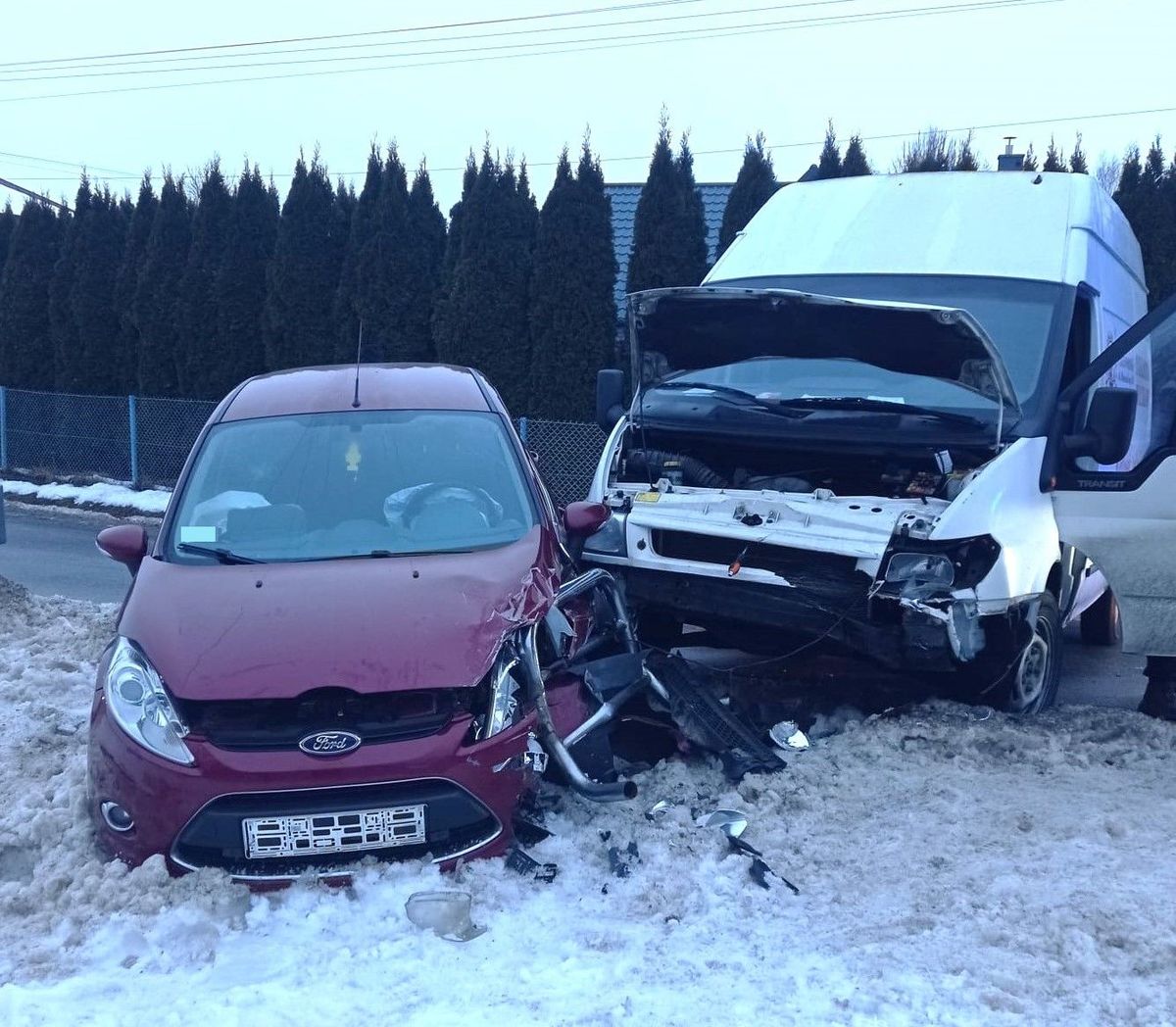 Jak wstępnie ustalili policjanci z Przeworska, 51-letni kierowca Forda Transita z niewyjaśnionych przyczyn zjechał na przeciwległy pas ruchu. Doprowadziło to do czołowego zderzenia z nadjeżdżającym z naprzeciwka Fordem Fiestą, którym kierowała 47-letnia mieszkanka gminy Kańczuga.
