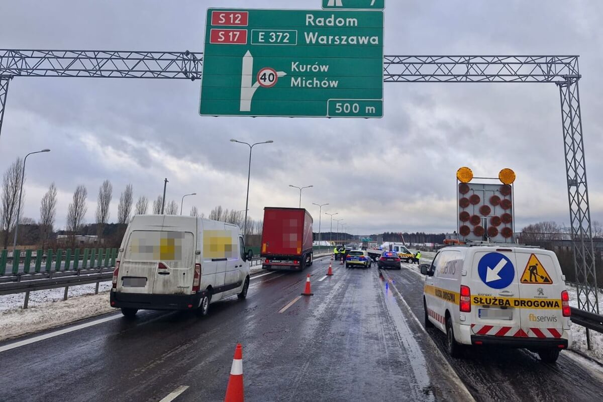 Do zdarzenia doszło we wtorek, 30 grudnia, przed godz. 8:00 na drodze ekspresowej S17. Około 500 metrów od węzła Kurów Wschód kierująca samochodem marki BMW straciła panowanie nad pojazdem na śliskiej nawierzchni. Auto wpadło w poślizg i uderzyło w samochód służby drogowej AVR, którego pracownicy zabezpieczali miejsce wcześniejszej kolizji.