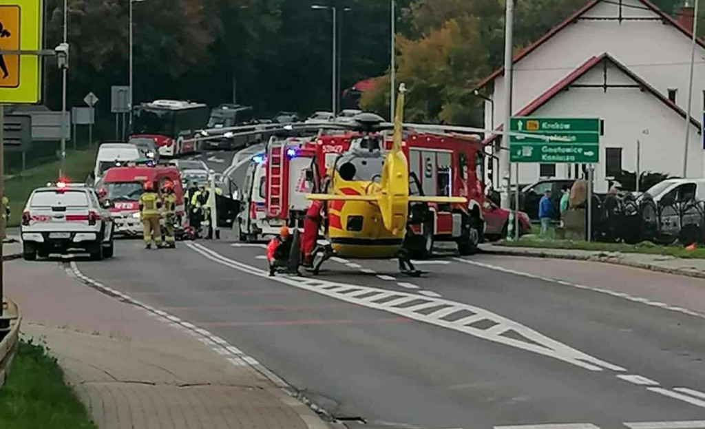 Śmigłowiec Lotniczego Pogotowia Ratunkowego wylądował na jezdni niedaleko Krakowa. realizowane są działania ratunkowe. Doszło tutaj do poważnego wypadku.
