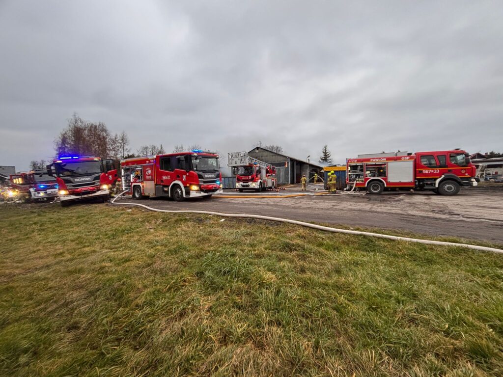 Przy ulicy Gamowskiej w Pawłowie paliła się hala o wymiarach 30 na 15 metrów, w której znajdowały się trociny i różnego rodzaju odpady drewniane. Po opanowaniu sytuacji działania strażaków skupiły się na usunięciu wszystkich materiałów palnych z wnętrza budynku i częściowym rozebraniu elementów konstrukcyjnych.