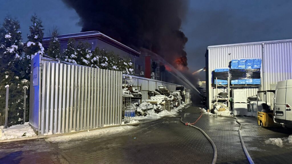 Ponad trzydzieści zastępów straży pożarnej gasi pożr hali magazynowej w Skawinie w województwie małopolskim.