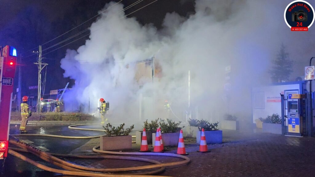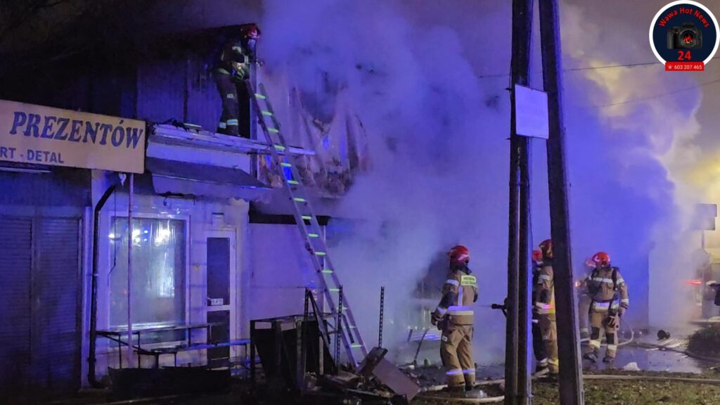Blisko 50 strażaków gasiło pożar kontenerów usługowych na terenie targowiska przy ulicy Bakalarskiej w Warszawie.
