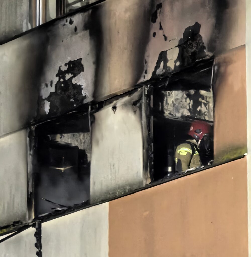 Pożar wybuch w mieszkaniu na trzecim piętrze czteropiętrowego bloku przy ulicy Księcia Janusza. Wszystko zaczęło się od kuchni, następnie ogień błyskawicznie przeniósł się na pozostałe pomieszczenia. Języki ognia wydobywały się z okien i panowało duże zadymienie.