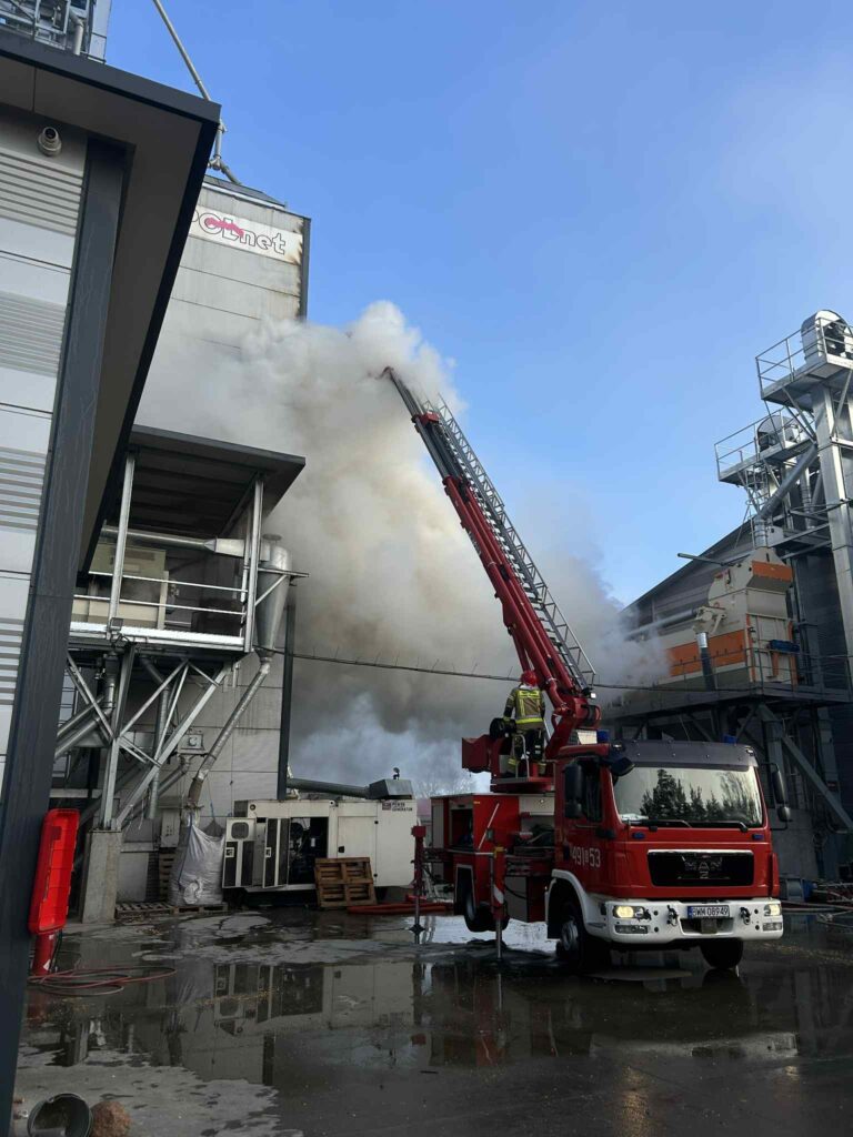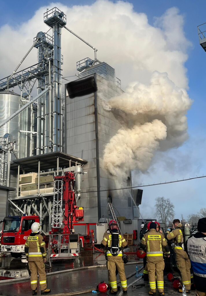 W momencie przyjazdu pierwszych zastępów straży pożarnej stwierdzono, iż pali się wnętrze instalacji suszarni, w której znajdowało się około 70 ton ziarna. Aby dotrzeć do źródła ognia strażacy musieli wycinać otwory przez które podawana jest woda.