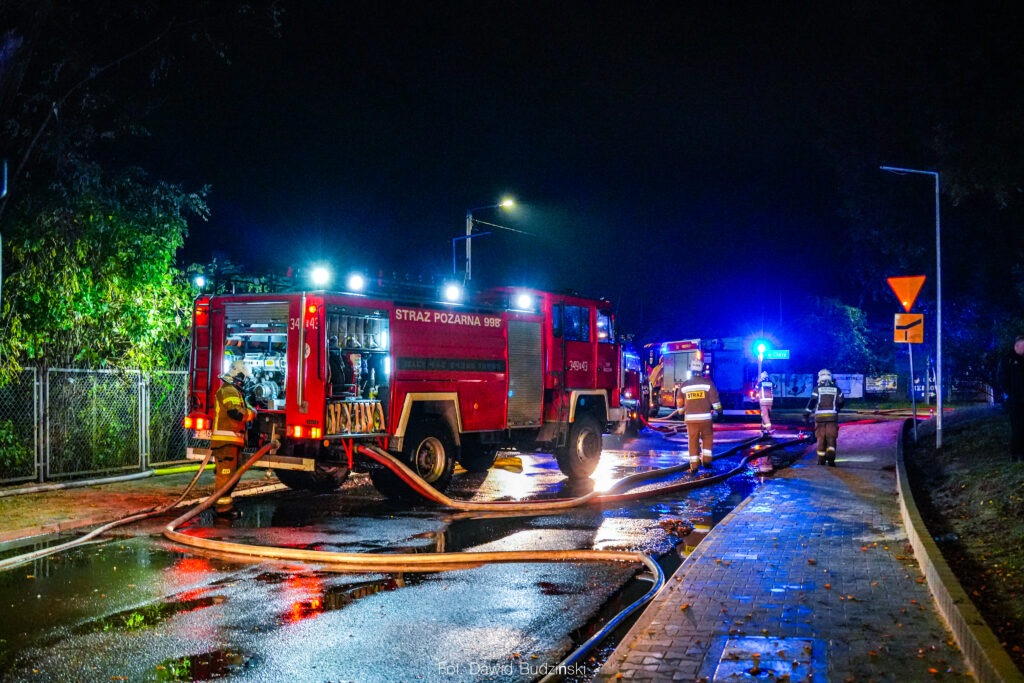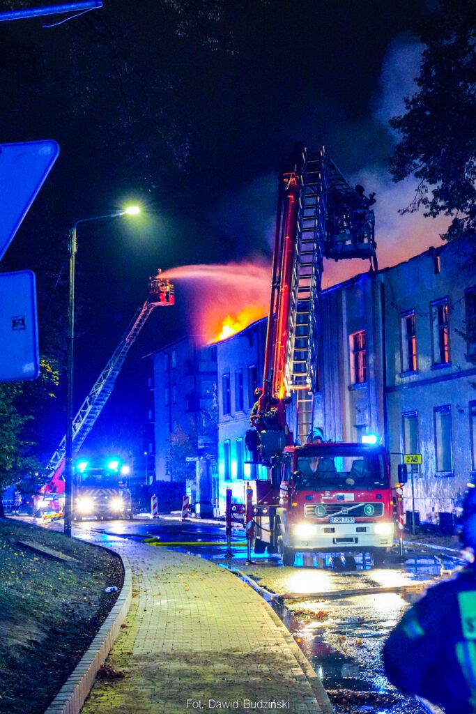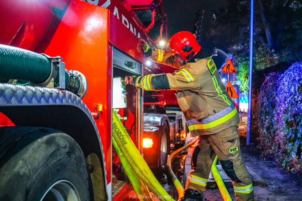 Z płonącego budynku ewakuowano dwie osoby, w tym jedną nieprzytomną. Była informacja o trzeciej osobie, ale strażacy nikogo nie znaleźli.