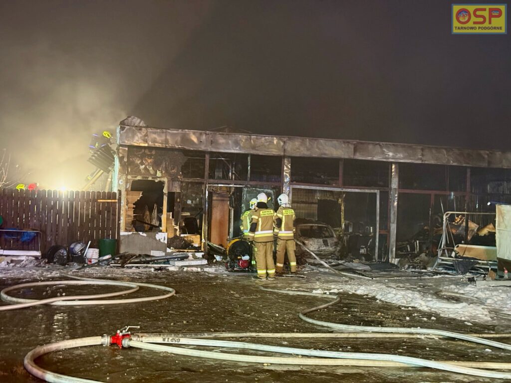 Kilkanaście zastępów straży pożarnej walczyło z pożarem warsztatu w miejscowości Rumianek koło Tarnowa Podgórnego w Wielkopolsce.